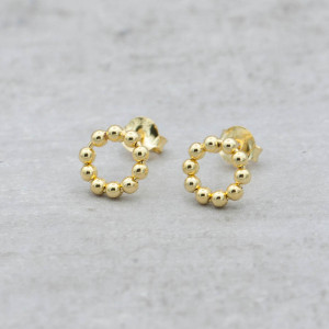 Simple and stylish gold earrings in the shape of a circle with small dots. Handmade in genuine silver from the Swedish brand By faith